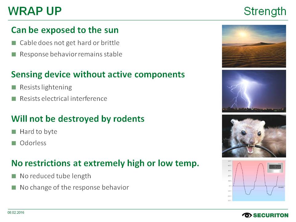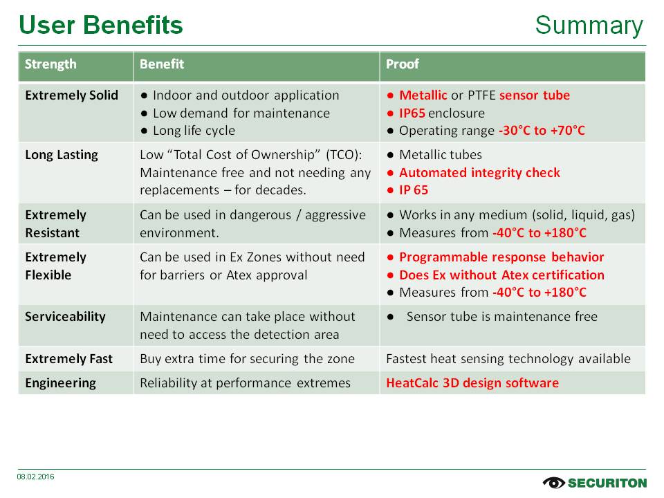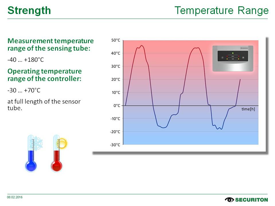 Seja o monitoramento completamente automático de grandes áreas, a resistência a gases corrosivos, extrema umidade e altas temperaturas ou a diferenciação entre alarmes falsos e perigo real; a lista de requisitos para um detector de calor linear de ponta é longa e detalhada.